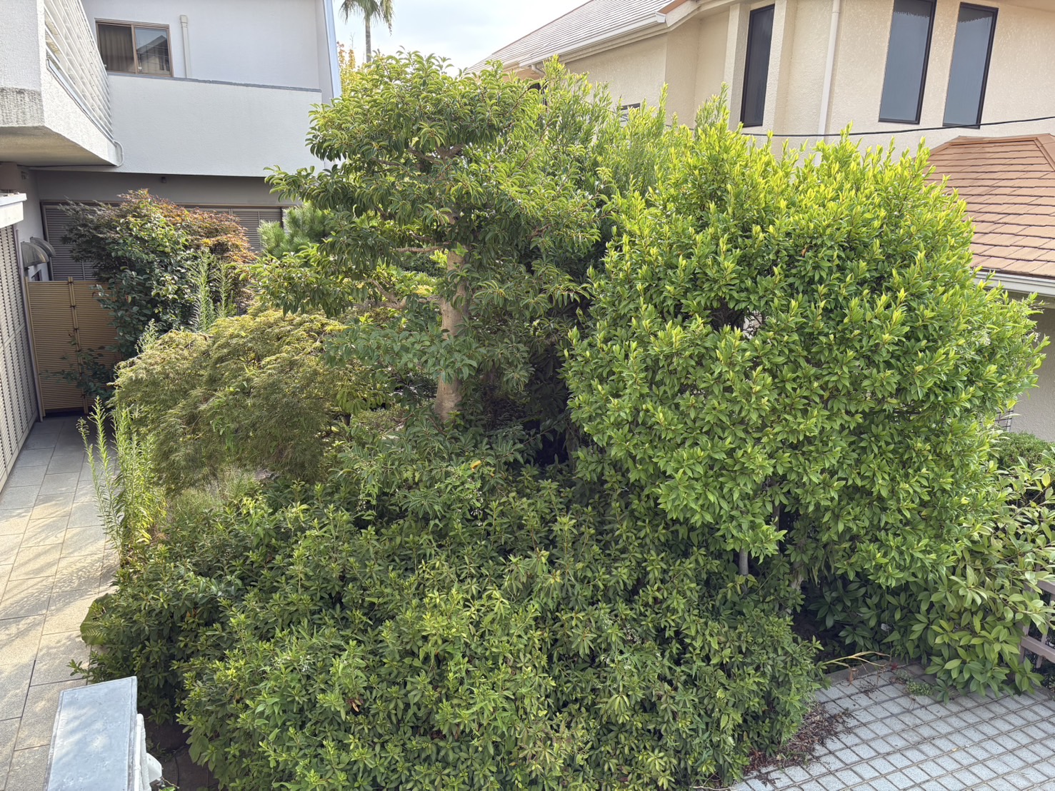 野々市市のお客様から「玄関前の木が伸びすぎて通路を塞いでる」とご相談をいただきました。