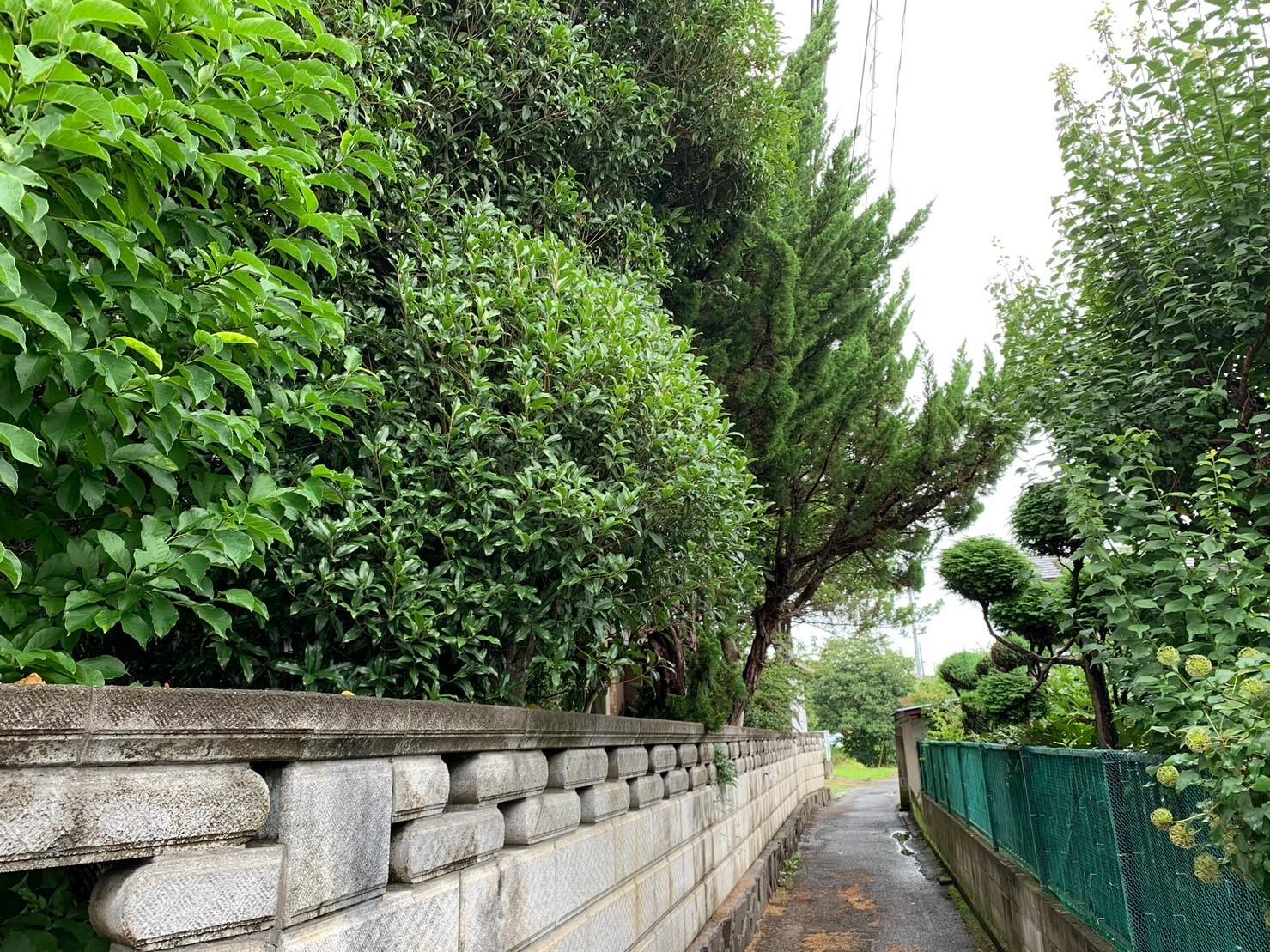 野々市市にお住まいのお客様から「庭の木が伸びすぎて、家の横の通路まで枝が出てしまって通行の邪魔になりそうだから、すぐに伐採してほしい」とご連絡をいただきました。